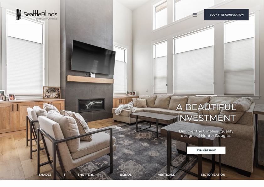 In preparation for opening a new location in Seattle, the client wanted a new site that emphasized luxury and had a high-end magazine look in order to compete with city organizations. We let the photography do the talking, while organizing the blinds categories in look-book style pages.